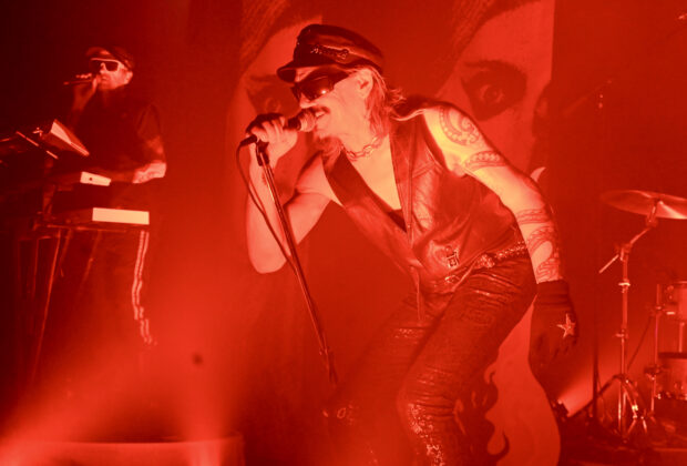 36 years later and Thrill Kill still throw one hell of a sex magick party. And on their Evil Eye Tour they play the hits, some album cuts, and a sprinkle of this and that. Back to the Teragram Ballroom where Detroit’s dark wave/electro-punk duo Adult. more than warmed the stage, they forged it, the crowd was now clamoring for Thrill Kill. Out of the darkness, into the fog and blue light, they kicked off their set, which celebrates the first ten years of their career. The first ominous sample of the night came in the opening number, “Burning Dirt” from their sophomore album Confession of a Knife…, from 1990. The diabolical refrain, “Tonight, we murder,” comes from a song of the same name, that was the flipside of the “Stigmata” single by Al Jourgensen’s Ministry. According to Groovie, he co-wrote and laid down the vocals for a side project they were working on, not knowing that Jourgensen would release it as a Ministry song. So TKK reclaim the song, and it perfectly sets the mood for the show.