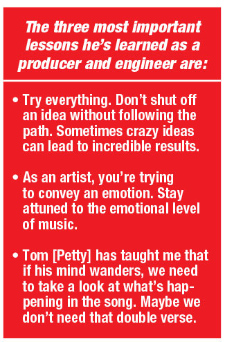 Ulyate met Petty around 2004 through friend Jeff Lynne when he was tapped to mix the Concert for George at London’s Albert Hall. Soon after, they collaborated. “Tom can do anything and then not be married to it,” Ulyate observes. “He has the ability to be objective if something has what it takes and has emotional content. I’ve learned a lot from him in that regard.”
