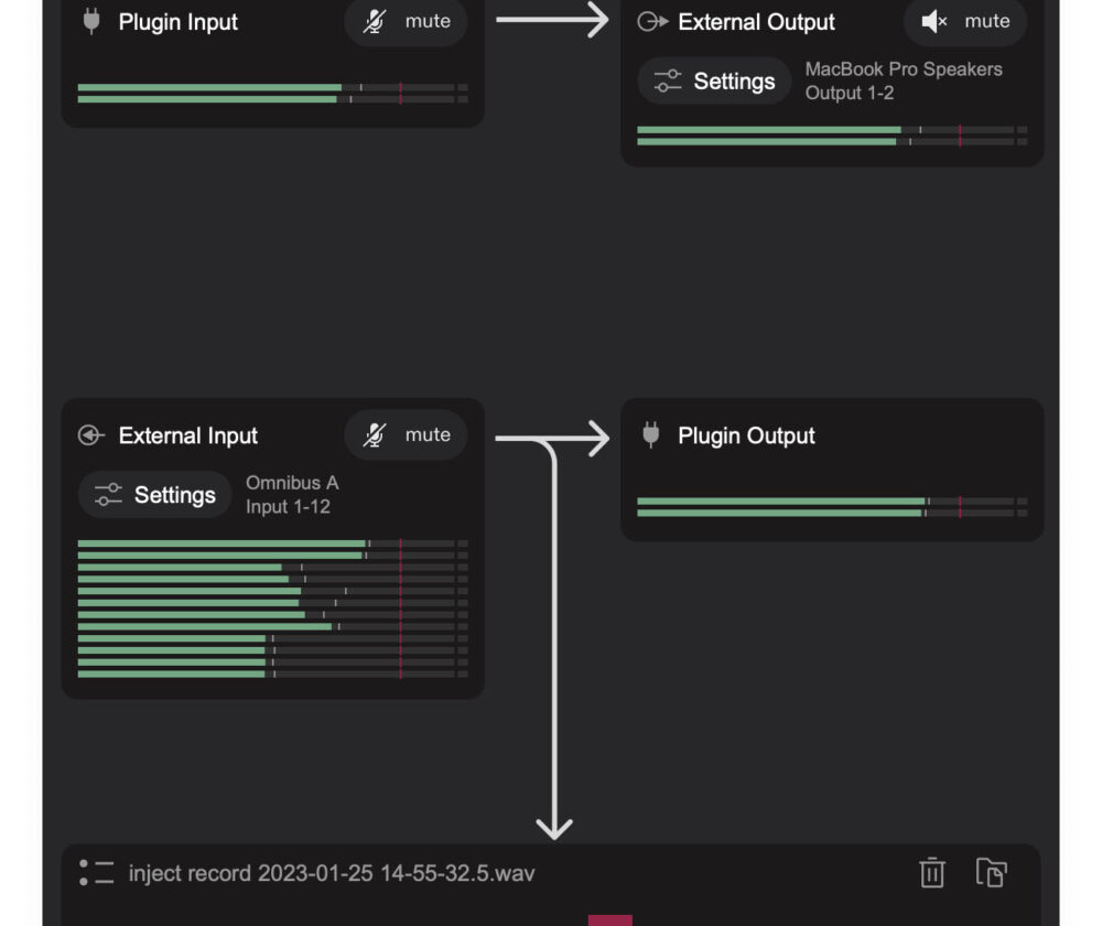 INJECT’s built-in recorder has drag-and-drop functionality that allows users to quickly capture audio snippets for further manipulation or referencing in any major DAW. INJECT is also supplied with a virtual audio driver for inter-application audio routing.